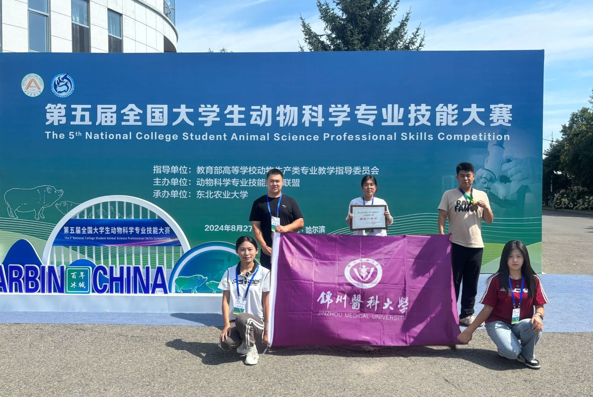 8月27日至29日,第五届全国大学生动物科学专业技能大赛在东北农业大学举行,来自全国75所高校的400余名学生参加比赛。我院动物科学专业彭消兵、刘思邈、王永淇、金鹏龙、许怡柔五位同学组成代表队参赛。竞赛内容涵盖四个项目:项目一 生态畜牧场规划设计、项目二 饲料原料掺假快速鉴定与识别--掺假鱼粉的鉴定、项目三 鸡的精液采集、品质检测及人工授精以及项目四 猪的体型外貌评分、活体背膘厚与眼肌面积测定。